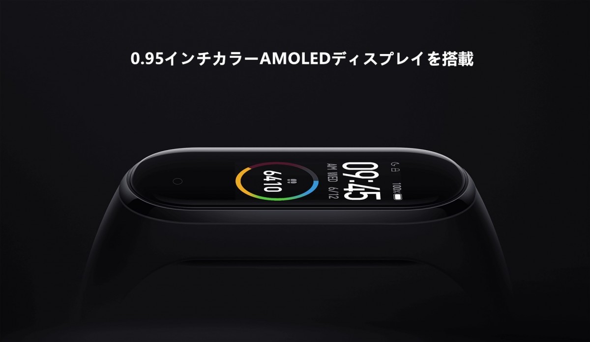対応OS:Android 4.4+ / iOS 9.0+、ディスプレイ:0.95インチAMOLED