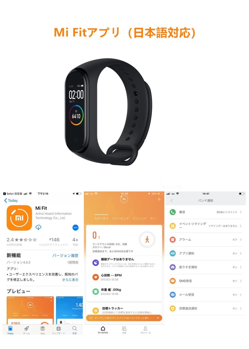 「専用日本語アプリMi Fit」