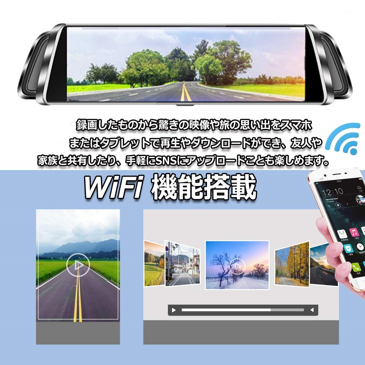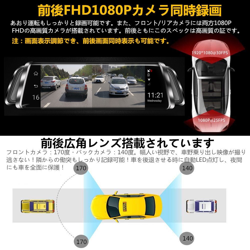 【2019最新版】ミラー型ドライブレコーダー 前後カメラ同時録画 駐車監視 GPS付き 常時録画 衝撃録画