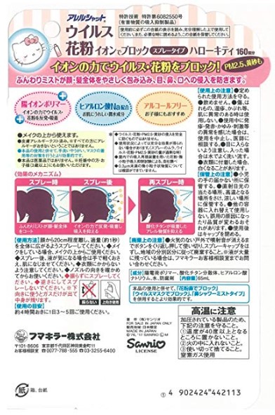 アレルシャット ウイルス 花粉 対策 スプレー イオンでブロック 160回分 スプレータイプ キティ