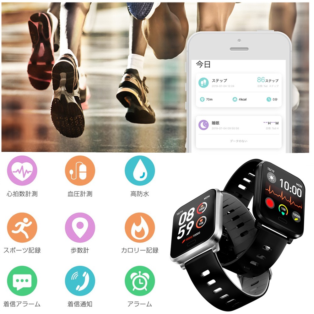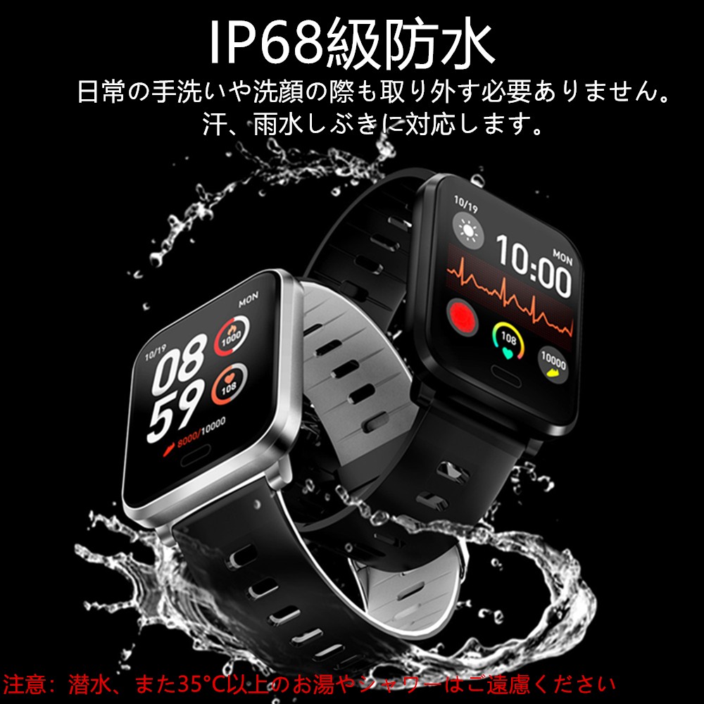 スマートウォッチ IP68防水 心拍計 歩数計 活動量計 消費カロリー Line/着信/電話通知 目覚まし時計 遠隔カメラ/音楽 天気予報 日本語対応