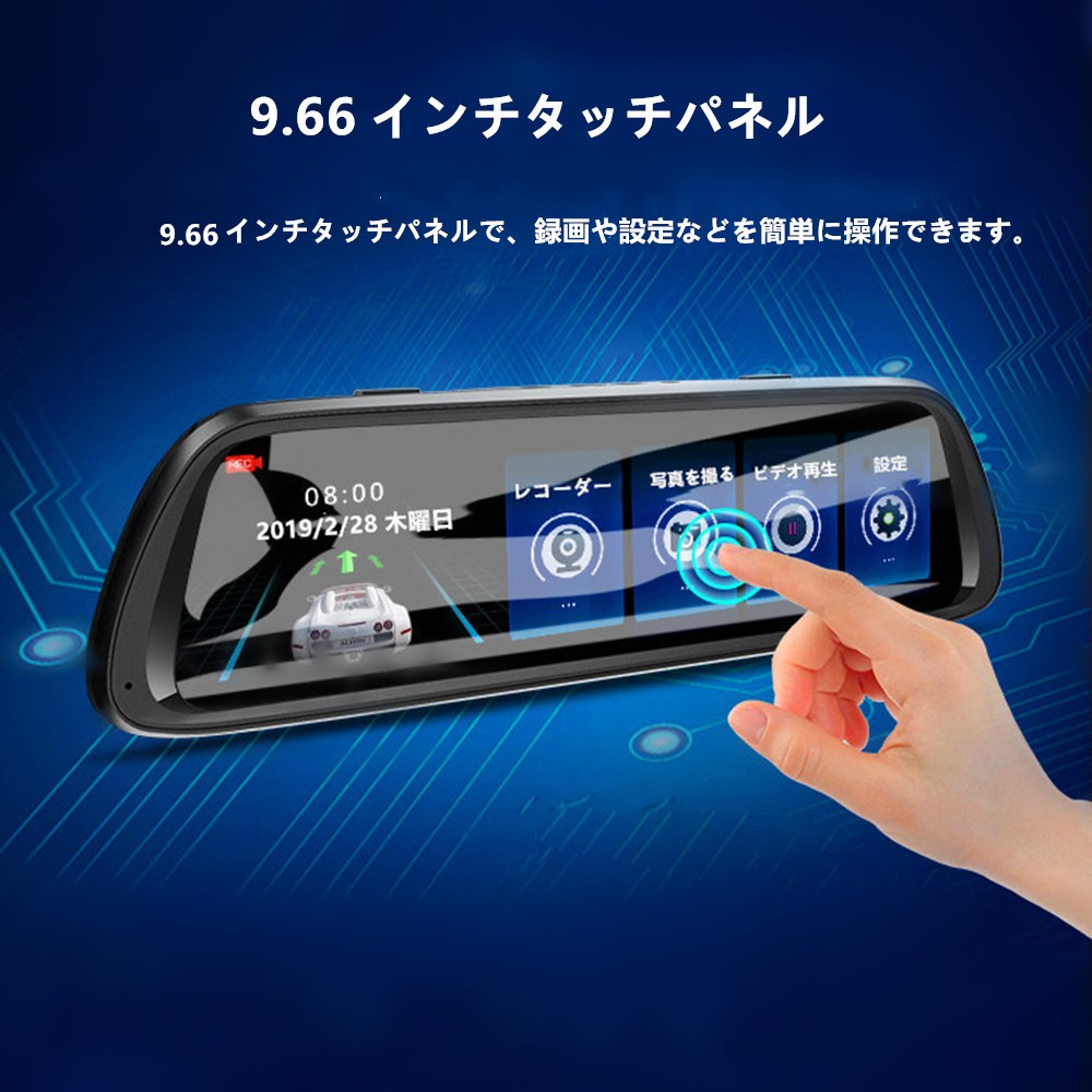 ドライブレコーダー 9.66インチ 前後カメラ同時録画 Gセンサー 1080PフルHD 170度広角 ループ録画 衝撃録画 駐車補助 WDR 日本語取扱説明書【32GBカード付】