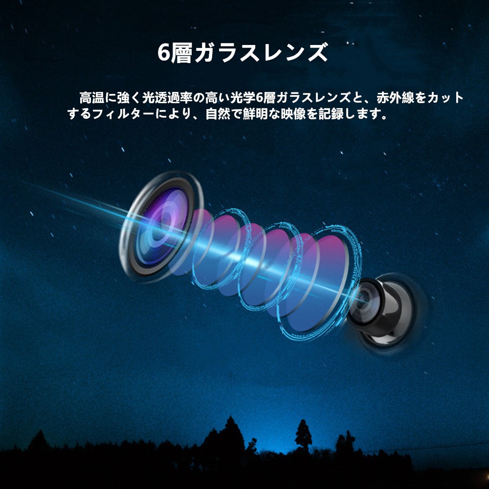 【6層ガラスレンズ】高温に強く光透過率のガラスレンズと、赤外線をカットするフィルターにより、自然で鮮明な映像を記録します。