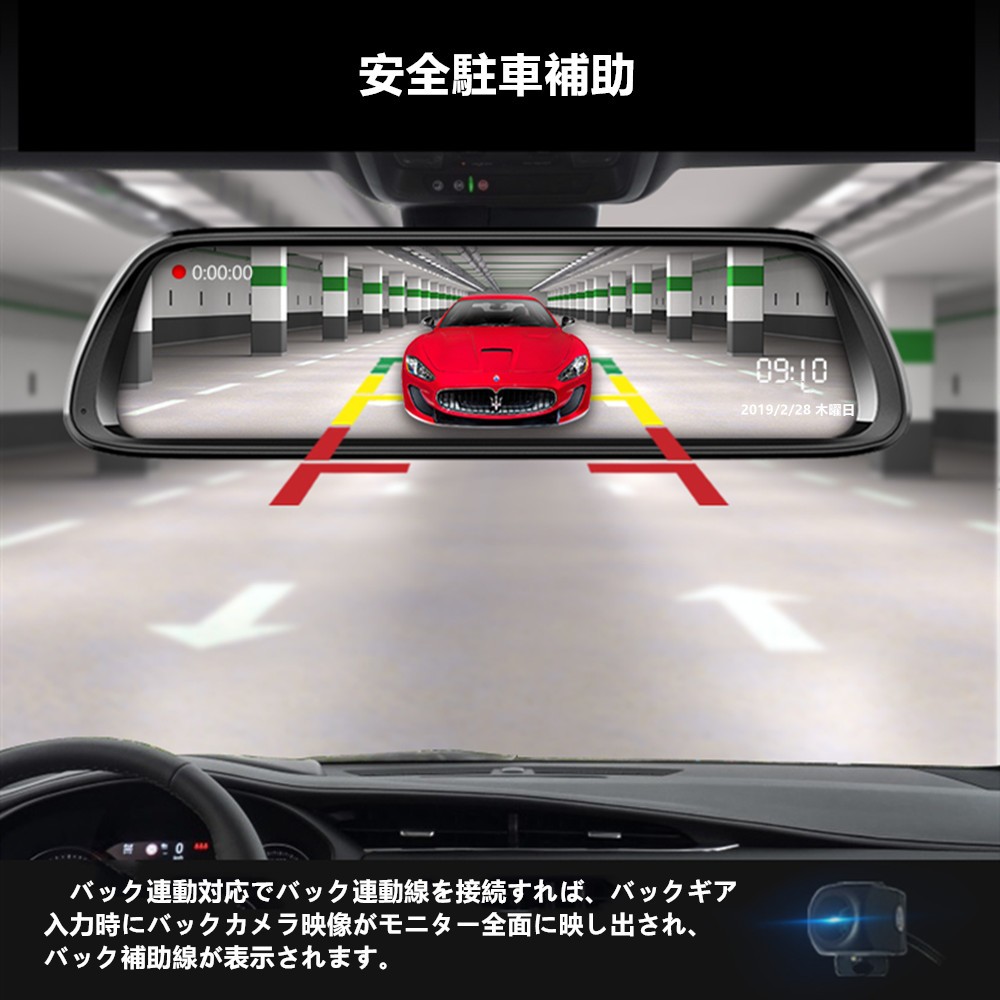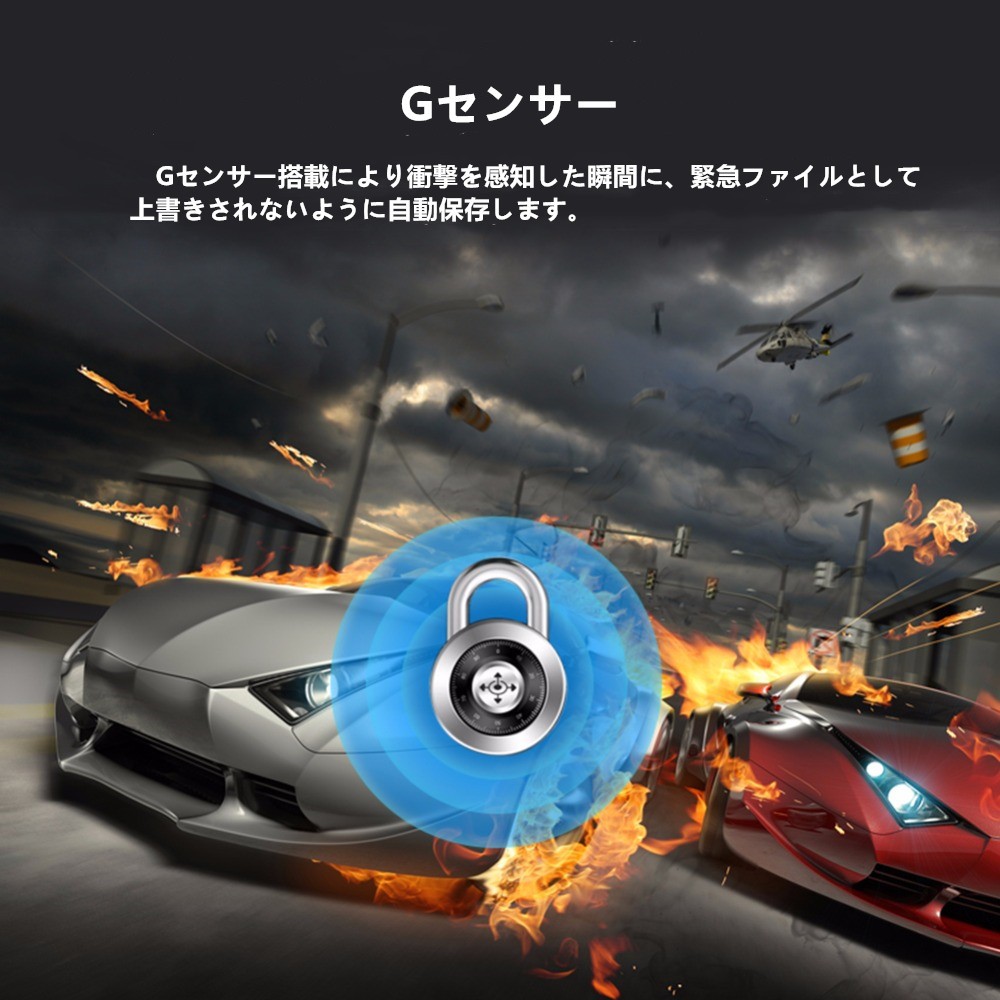 【Gセンサー搭載、ループ録画、安全駐車補助】Gセンサー搭載により衝撃を感知した瞬間に、緊急ファイルとして 上書きされないように自動保存します。ループ録画は、microSDカードの容量がいっぱいになると、最も古い映像から新たな映像に上書きされます。連動線を接続すれば、バックギア入力時にバックカメラ映像がモニター全面に映し出され、バック補助線が表示されます。