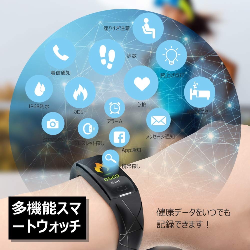 2019最新版 スマートウォッチ心拍計 歩数計 IP68防水 消費カロリー line 着信電話通知 iphone /android 対応 リストバンド 父の日へ 母の日 敬老日