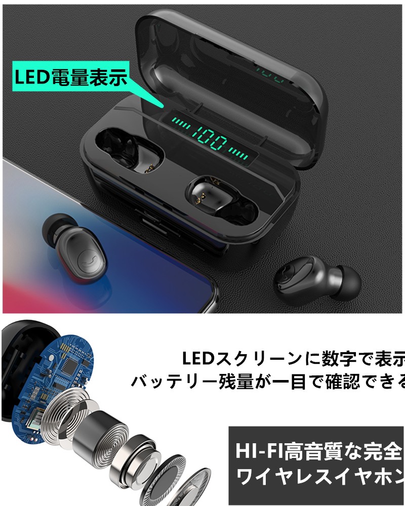 【3500mAh超大容量充電】バッテリーの磁石式でカチッと充電できる収納ケース付きます、イヤホンの紛失防止、連続再生時間が最大120時間まで実現。正面のUSB出力ポートよりスマホや他の設備に充電出来、とっても便利です。