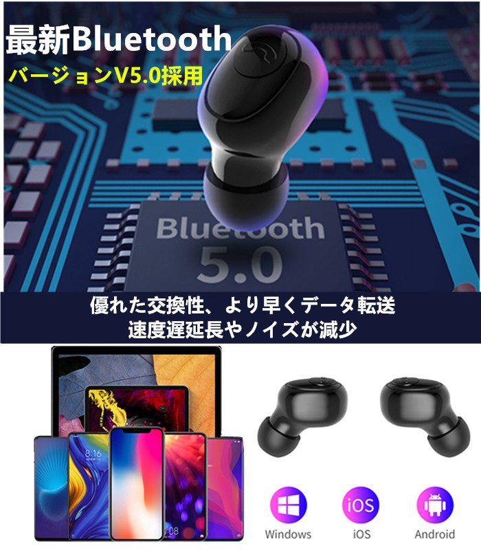 Bluetooth イヤホン Hi-Fi 高音質 AAC対応 最新5.0+EDR搭載 完全ワイヤレス左右分離型 自動ペアリング/iPhone & Android対応 (ホワイト&ブラック)