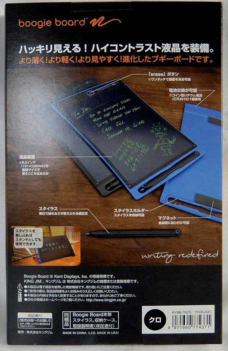 大型8.5インチディスプレイで書きやすく、見やすく、簡単に消せる。メモは当然ながらコミュニケーションツール・お子様の知育ツールとしても幅広く使えます。ボタン電池CR2016が交換可能で収納ケース付きなので外出先でも使えます。