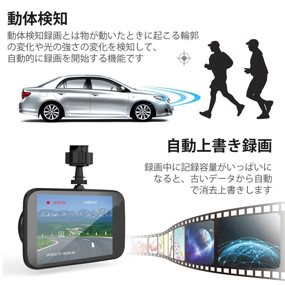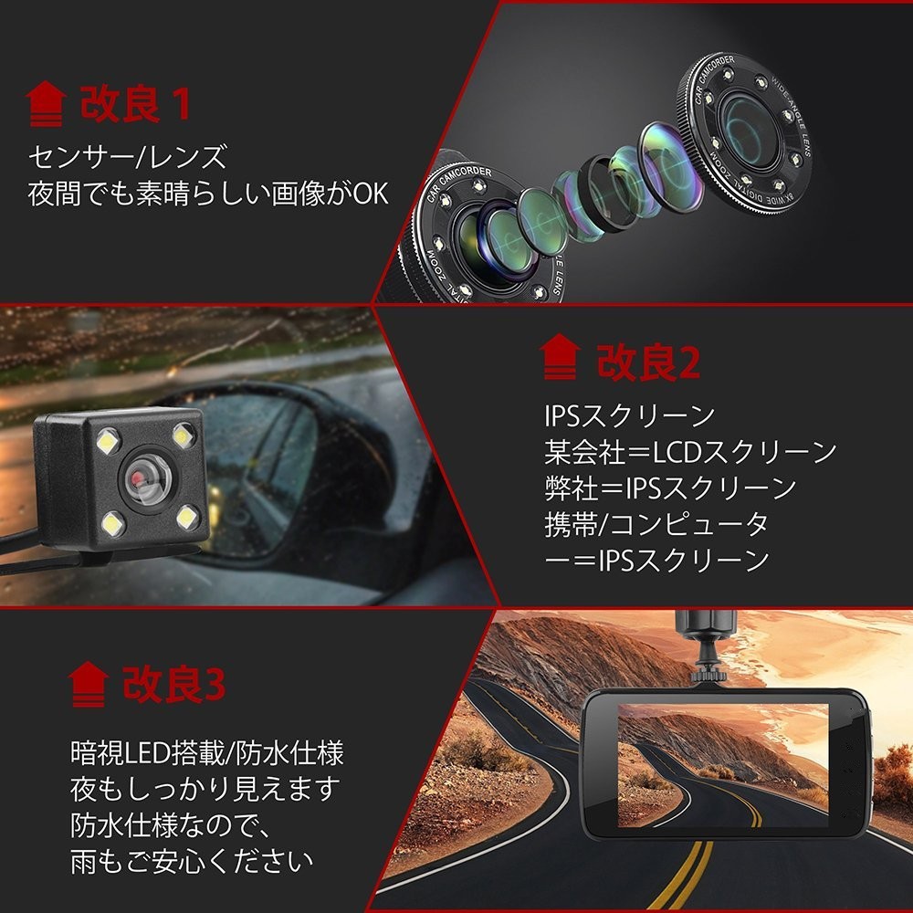 ドライブレコーダー」前後カメラ 車載ドライブレコーダー 駐車監視 動体検知 ループ録画 緊急ロック