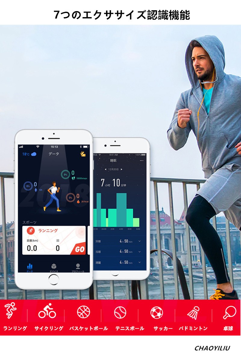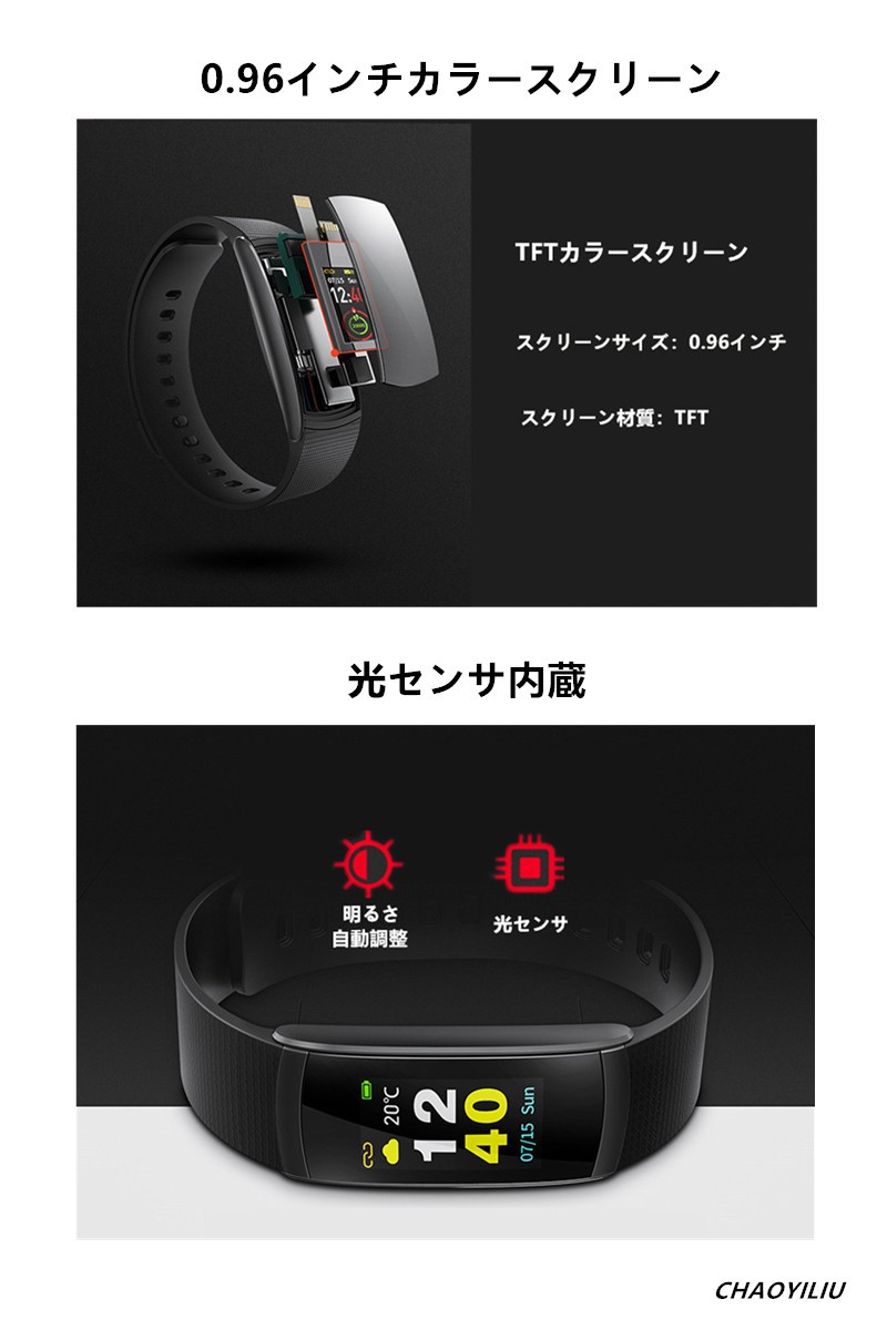 対応OS:iOS 9.0+/Android 4.4+ 、ディスプレイ:0.96インチTFTカラースクリーン