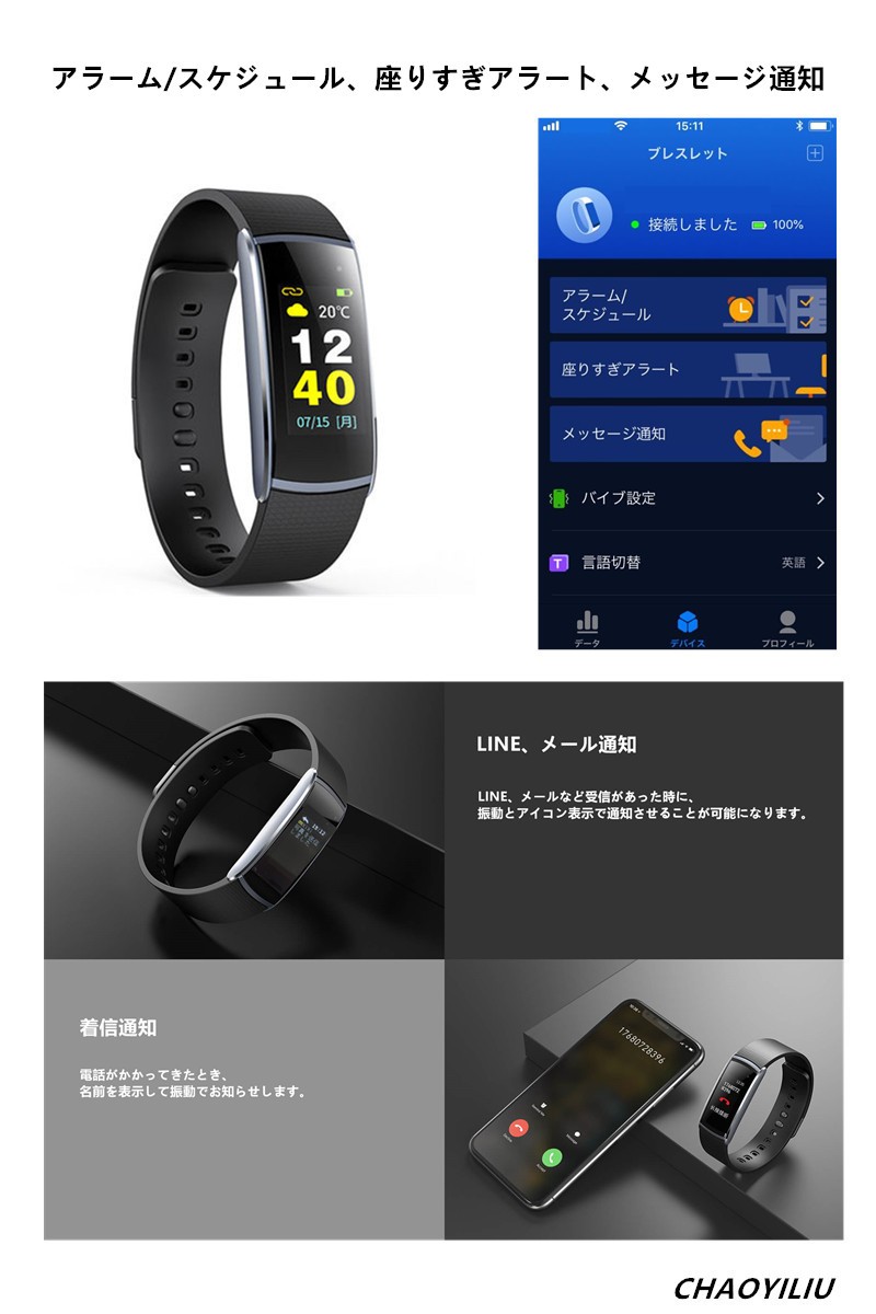 アラーム/スケジュール、座りすぎアラート、メッセージ通知などの機能も持っています。