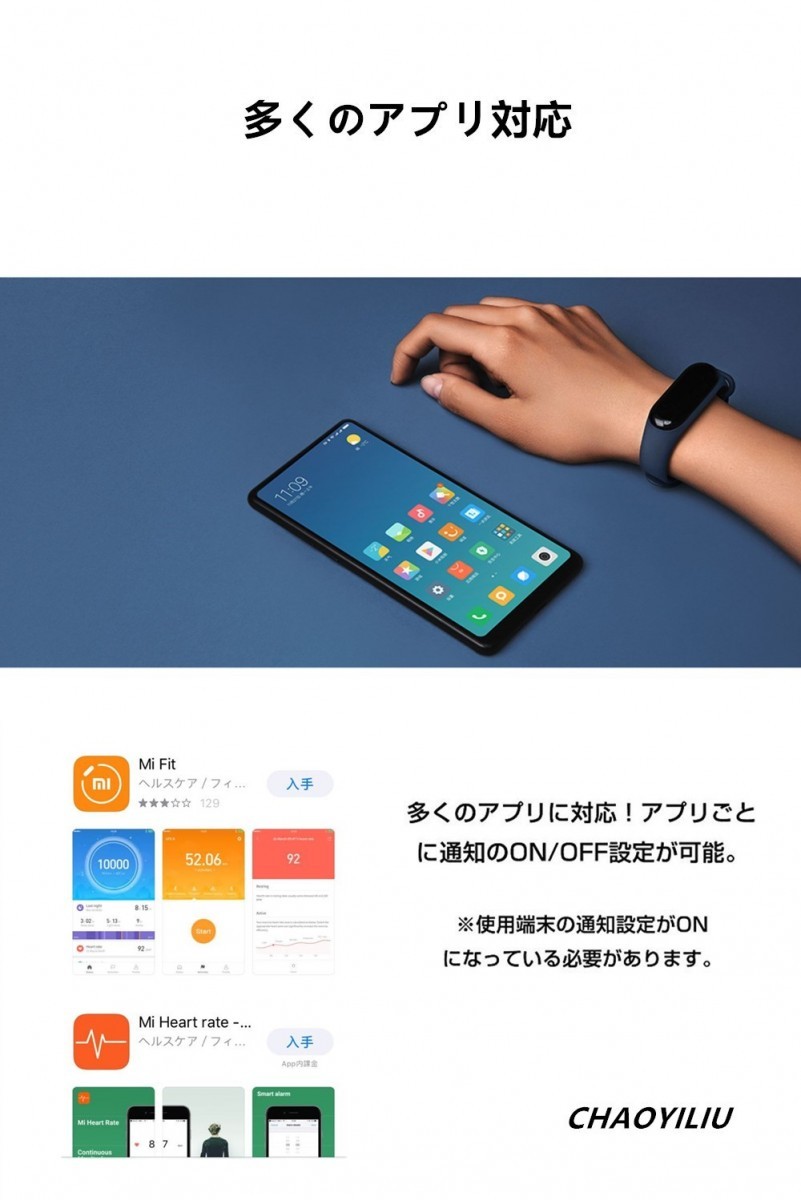 【多機能スマートウォッチ】(1)距離、歩数、消費カロリー、アクティブ内容を記録し、データをBluetooth 4.2 BLE経由でMi Fitに同期し、心拍数、アクティビティ、睡眠パターンなどをチェックし、より健康的な生活習慣と合理的なトレーニングプログラムを作成することができます。(2)アイドルアラート機能 :長い時間座りっぱなしであることを知らせます。 運動リマインダーで、休憩を取るタイミングが分かります。(3)ランニングに最適 :毎日のランニングはフィット感と健康を保つのに最適です。Mi Fitアプリと同期し、走行速度と心拍数をリアルタイムで監視できます。(4)睡眠モニター機能 :深い睡眠に入ると、心拍数が下がります。心拍数睡眠補助機能は、眠っている間に心拍数を測定し、浅い・深い睡眠パターンがより正確に追跡することができます。