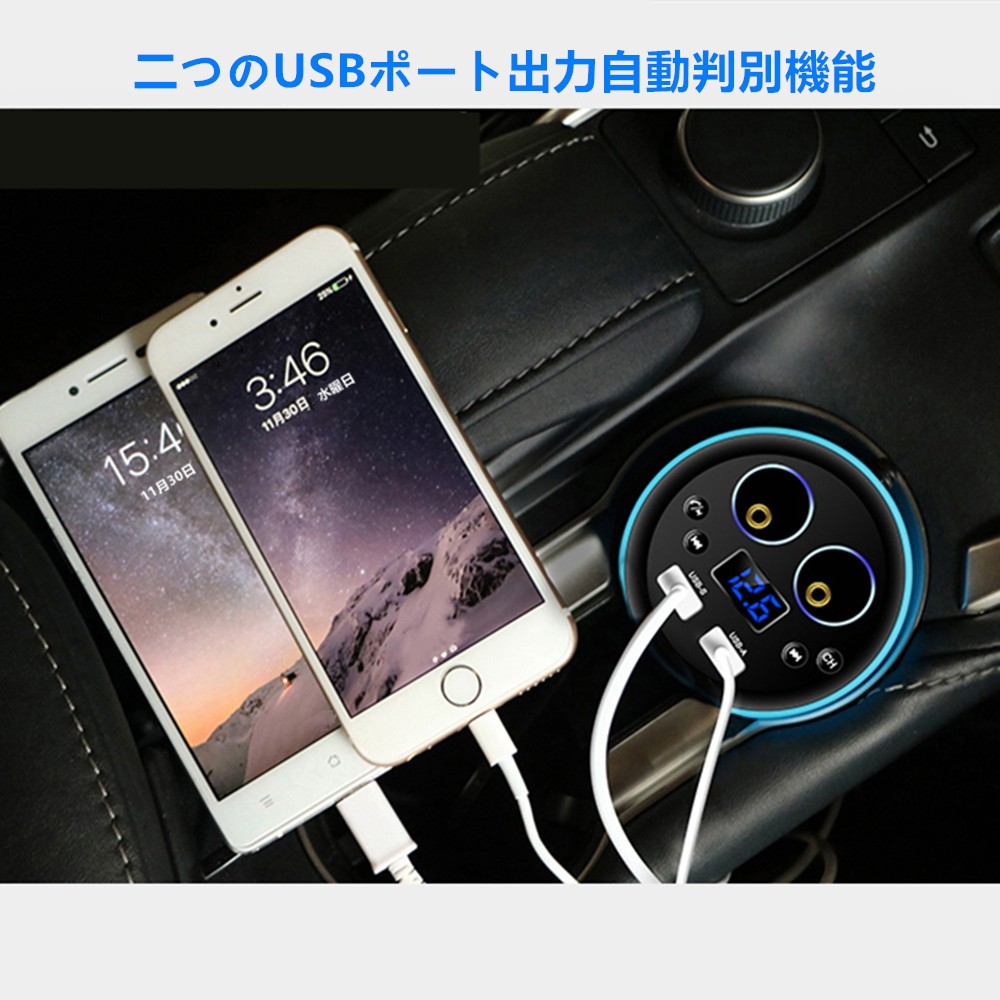 【2つUSBポート車載充電器】二つUSBポート合計最大3.1Aで、自動的に機器の最大出力に合わせて急速充電できます。iPhoneやiPadなど4台も同時充電できるので、とても便利です。